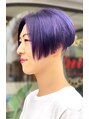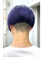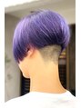 カットはラインをしっかり残した重めの前下がりを高めの2ブロックにオンしたエッジの効いたスタイルです。カラーはブリーチ後スモーキーバイオレットアッシュを入れました。個性派の方にオススメです。
