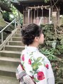 毛先をほぐしてフワフワなカジュアルなアップスタイルです。
