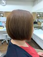 前下がりボブです。夏に向けて、襟足スッキリ短めです。カラーはピンクブラウンで!!