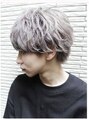 鎖骨下の長さのミディアムレイヤースタイルにミックスで大きめのカールでパーマをかけます!カラーは7トーンのダークアッシュで色味とともにトーンも落ち着かせます!