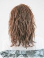 ガーリーなウェーブ感と前髪かき上げスタイルで大人っぽく、かっこいい印象に。スタイリング剤はミルクを使用し、ふんわりツヤ感を演出。カラーはピンクブラウンのハイトーンカラーで夏っぽさをプラス。【EARTH●●店】