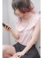 全体ブリーチしてから、インナーはピンクオレンジ、パープルのユニコーン、表面はアッシュグレーでカラーしました★可愛い中に個性を詰め込んだスタイル○