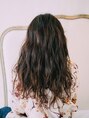 重ためベースのワンレングスに軽めのレイヤーをいれた重軽セミロングスタイルです。スタイリングはトップにボリュームが出るようにドライし太めのコテで波ウェーブになるようゆるく巻きます。