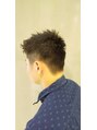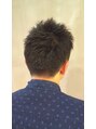 サイドを刈り上げた男性らしいシルエットに柔らかな毛先のニュアンスのあるヘアスタイル。黒髪で男前ヘアが完成!