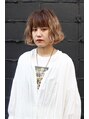 アゴラインのボブベースに、ハイブリーチ後、根元には6トーンのブラウンでダウンし、毛先にはクリームベージュでランダムに仕上げています」。
