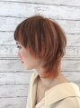 襟足を長めに残した、マッシュルームベースに、ハイライトなど、計算しつくした、デザインカラーを施しました!暗めのオレンジと、淡いオレンジのコントラストが、立体感と夏らしさを出してくれます。オレンジベージュとマッシュルームの相性◎です。
