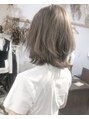 ハイライト(ブリーチ)入りのグレーベージュカラーに無造作ボブスタイルです♪