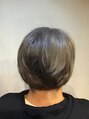 サイドとバックツーブロックでそれが見えないスタイル。カラーはブリーチとカラーでグレーパールに染めました。
