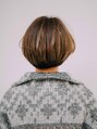 丸みのあるマッシュボブ!レイヤーがほぼ入っていないので重く見えがちですがボブのツヤ感とヘアカラーのハイトーンぐあいでとても透明感のあるショートスタイルに!