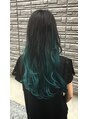 シールエクステ部分をエメラルドグリーンにした、ハイライトグラデーション風ロングヘアー!地毛、暗い色からスタートする場合はブリーチが必要です!