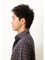 直毛、剛毛な髪質だがトップ毛量が少なくボリュームが出ずサイドの膨らんでしまう。 サイドは耳を出して膨らみを抑えるよう短くカット。 トップはぺたっとした寂しげなシルエットから動きとボリュームが出せるようカットし自然なシルエットにしてみました。