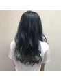 全体をブリーチし、ハチから上には濃いめのブルー、ハチ下には薄くくすませたブルーを入れ、夏らしい淡水カラー◎巻くとより透明感が◎