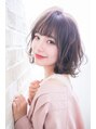 肩レングスのふんわりボブスタイルです^ ^フェミニンカールが愛されスタイル☆透け感のある流し前髪で軽さもプラスして☆カラーは8レベルのチャコールにアマランスをミックスして柔らかい質感に(*^_^*)ブックマークしてカウンセリングの際にお使い下さい☆