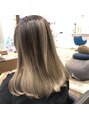 2ブリーチで作るハイグレージュのバレイヤージュ。根元暗めからハイトーンのグラデーションで伸びても目立ちにくいカラー。2ブリーチ以上でムラシャンもOK!※ブリーチ回数は応相談です。回数を重ねるのもオススメ!金本のインスタグラムもご覧ください。