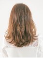 表面にフォワード巻きで柔らかいニュアンスを出した、ゆるハネスタイル。根元を立ち上げるように巻くのがポイント。スタイリングはミルクを使用し、ふんわり抜け感のある印象に。【EARTH●●店】