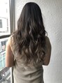 地毛がミディアムくらいで以前にグラデーションカラーをしていると作りやすいスタイルです。ヘアカラーは毛先に徐々に明るさを残しながらトーンダウンして、そこからつながるようにエクステを3色ミックスしてロングスタイルのグラデーションにしています。