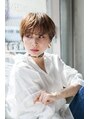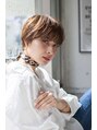 マッシュショートにゆるやかなニュアンスカールをつけ、丸みのある柔らかいシルエットに。仕上げはバームで艶を出してます。