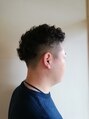 前髪を立ち上げて、バックに流せるようにパーマをかけました。髪質が硬くストレートで、耳周りの髪の伸びも早いとのことだったので、2ブロックを入れて、質感調整をして軽くしました。お客様ご本人にも大変満足して頂けました!