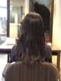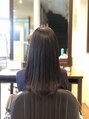 髪の褪色と癖でのうねりが気になるというお客様。ケラチントリートメント+痛んで見えないような赤味をなくしたカラーをというご希望でしたので、モノトーンをベースに、ブルー カーキをブレンドした、透明感のあるネイビーブルージュ系カラーです【表参道】