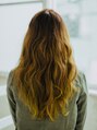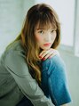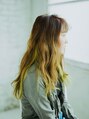 全体的を巻いて動きを出しているカジュアルなロングヘアスタイル!無造作にセットしたバングは柔らかい印象がでていてかわいいです。根元から毛先にかけて明るくなるイエローのツートーンカラーは個性的で目を引く印象的なデザインになっています。