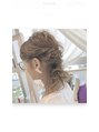 夏のアレンジスタイル。サイドからバックにかけてねじり 前から見たら まとめてるように見せています。くずして無造作に。