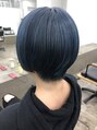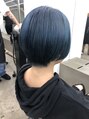 リップラインで切ったショートカットに深めに入れたターコイズブルーの意志のあるヘアスタイルです刈り上げはせずに女性らしさをしっかり残したカットカラーは色落とすると、薄い青味のあるグレーのような清涼感のある色になります。ぜひ 店長 小林