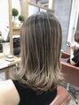 ハイライト履歴のあるスタイルに、表面にのみエアータッチバレイヤージュを施したスタイル