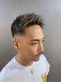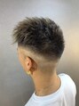 後ろはフェードで繋ぎ、トップの長さは少し短めに!フロントにかけて前下がりにする事で前髪に長さを出すことが出来ます!フェードのラインともバランス良く合います!セットの時に自分でやりづらい、後ろを気にしないで平気な髪型です!