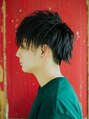 レイヤーをたくさんいれて軽やかな印象のメンズショートスタイルにウェーブでスタイリングしておしゃれな印象に!サイドとバックは外ハネにして、カラーもおちついたブルーブラックで大人っぽい印象になります!