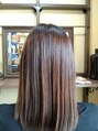 縮毛矯正と白髪染めを繰り返しているお客様。白髪染めも明るめに調合していますがダメージ感はないです。