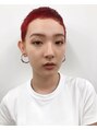 発色の良いオレンジカラーに潔いバズカットです。もみあげを少しだけ長さを残してあえてブロンドのままにしてあります。スペシャルなヘアスタイルです。店長 小林