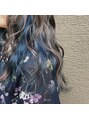 ブリーチを重ねたベースにダークグレーとインナーカラーにカラーバターでビビットなブルーを**