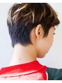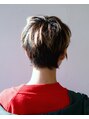 個性的なシルエットのショートスタイルです。耳周りや襟足を切り込んでいます。もみあげや襟足は柔らかさを出すために少し残しています。