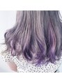 全体を1度ブリーチしてからハイライトでバイオレットを入れて、全体はグレージュカラーを入れてあります☆相性の良い組み合わせです^ - ^