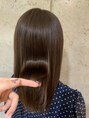 ツヤと透明感が同時に手に入るベージュ系のアッシュカラーです♪オーダーメイドのaujuaトリートメントで、縮毛矯正をかけなくてもツヤサラにクセもしっかり抑えてくれます♪