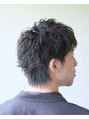メンズショートのパーマスタイルです。男性はパーマかけると簡単にセットできておすすめです。毛量が多いのでしっかり減らして軽くしています。