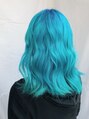 トリプルカラーで根元が青のターコイズカラーグラデーションにしました。ケアブリーチのスマートボンド使用しています。