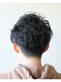 襟足とサイドの内側は短く刈り上げて、トップの長さがある部分にパーマをかけています。男性はパーマかけるとセットが簡単です。