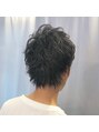 前髪は斜めにして、襟足は短めで外ハネパーマにすると、面長さんでもスラッとカッコイイ雰囲気になります★クセを活かしたカットでパーマみたいにふんわりまとまります!サイドはソフトツーブロックにしてビジネスシーンでも大丈夫なスタイルに。