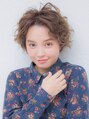 マッシュショートレイヤー。おでこを出すとキュート感UP☆明るめカラーの個性派スタイルです!強めのパーマとハイトーンカラーがカワイイ!