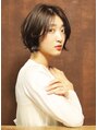 ナチュラルでベーシックなショートボブ。カットラインを柔らかく仕上げ大人っぽい女性らしさを残しつつ、毛先に動きをつけキレイにまとまりすぎないカジュアルさを出しました。前髪を頬下に作ることで小顔に見せてくれます。
