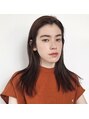 タイトなストレートロング。重めのベースに少しだけレイヤーが入っています。前髪なしもしくはオールバックにしてスタイリングすることでクールで凛とした印象に。カラーはオレンジブラウンでカジュアルに。