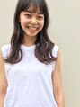毛流れを柔らかく見せたセミロング。程よい明るさが長めでも軽い印象を与えます。毛先にかけて少し明るくカラーをするのがポイント。前髪は眉ラインでワイドに広げたデザイン。耳にかけた時のお顔周りとのバランスが◎