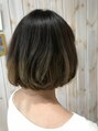 ボブのラインはつつも毛先をあそばせて柔らかく仕上げたスタイルです。アッシュ系のグラデーションカラーで束感を強調した外国人風の仕上がりに。
