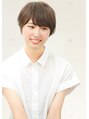 厚めバングで小顔に見せ、ハイライトとローライトで動きを。くせ毛も生かせるルーズな無造作スタイル。軽やかに弾むラフなスウィングショートに。【イルミナカラー】