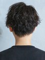 巻き強めの無造作マッシュウルフスタイル。直毛の方は、パーマで無造作なくせ毛風に。ハード系のワックスで仕上げ、ウェット感を出す。メンズのパーマスタイルも是非EARTHでお任せください。