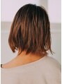 ワンレンベースのボブで毛先をざく切りにガーリー感をプラスしたスタイルです。顔まわりを外に逃げるようにカールさせています。