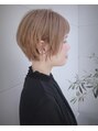 抜け感ある毛先とプチバングでカジュアルヘアを満喫☆サイドは耳かけでタイトに収めたショートヘア。カットで動きが出るようにしているので、スタイリングも簡単です☆カラーはハイトーンでカジュアルなミルクティーベージュ☆