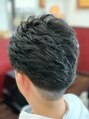 くせ毛を生かしたパーマ風スタイルサイド4mmの低めのツーブロックバック6~9mmのグラデーション