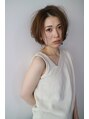 前髪なしの大人っぽショートボブ。顔周りは長さを残してえりあしはスッキリと。媚びないナチュラルなショートは男女共に人気。ヘアカラーはオーガニックカラーのシダーアッシュで透明感を。
